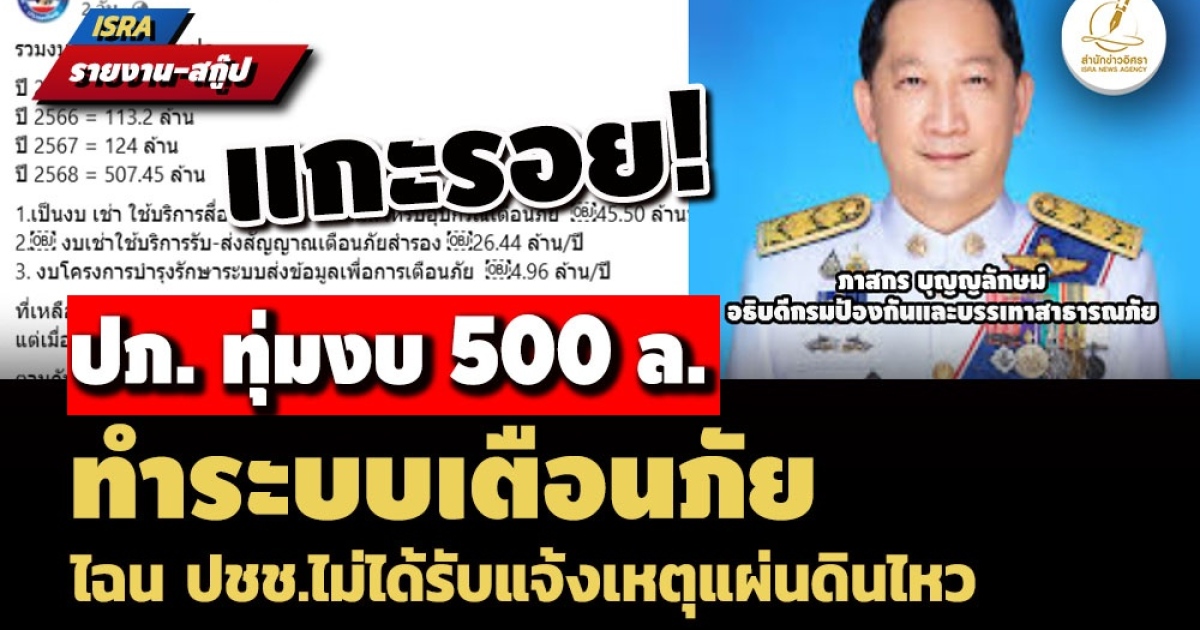"...สำนักข่าวอิศรา ตรวจสอบข้อมูลเบื้องต้น พบว่า เมื่อวันที่ 27 มีนาคม 2568 กรมป้องกันและบรรเทาสาธารณภัย (ปภ.) เพิ่งทำสัญญาว่าจ้าง บริษัทเรย์แด้นท์ อินเตอร์เนชั่นแนล ซึ่งเป็นผู้ประกอบการ SME เป็นคู่สัญญาจัดทำโครงการพัฒนาระบบแจ้งเตือนภัยผ่านสัญญาณโทรศัพท์เครื่อนที่ วงเงิน 430,000,000 บาท ตรงกับข้อมูลที่ เพจเฟซบุ๊ก ชมรมSTRONGต้านทุจริตประเทศไทย นำเสนอข้อมูลไปก่อนหน้านี้..."
