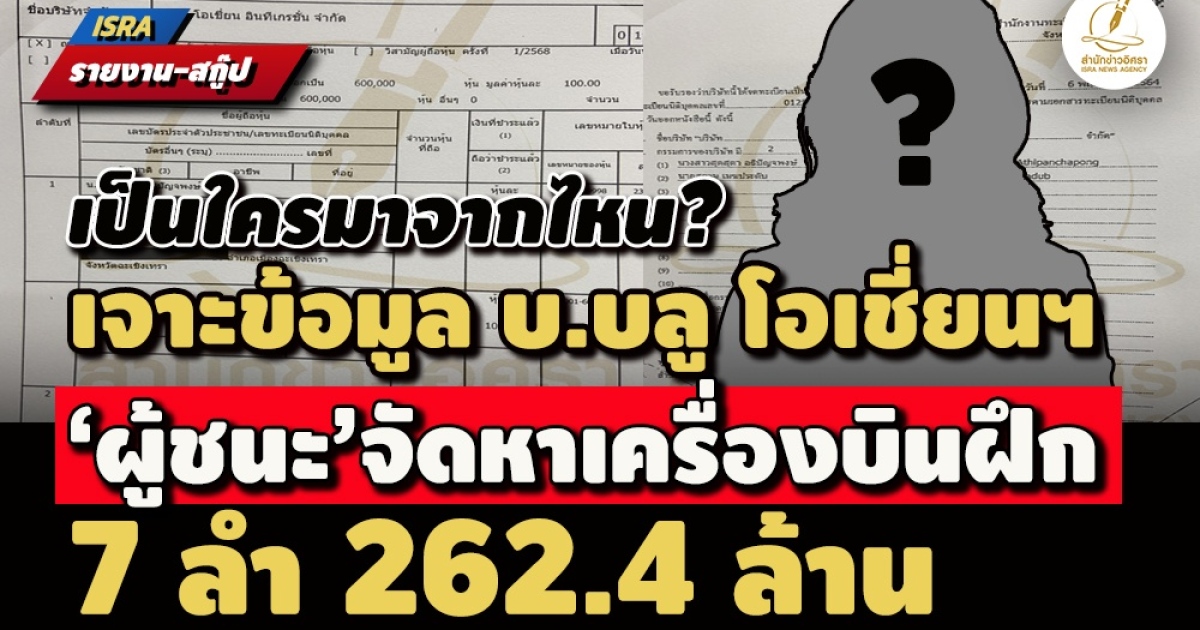เป็นใครมาจากไหน? เปิดเอกสาร บ.บลู โอเชี่ยน อินทีเกรชั่น ‘ผู้ชนะ’จัดหาเครื่องบินฝึก 7 ลำ 262.4 ล. โดยวิธีเฉพาะเจาะจง ก่อตั้ง 4 ปี ทุนล่าสุด 60 ล. จดแก้ไขวัตถุประสงค์หลายครั้ง ทำธุรกิจ