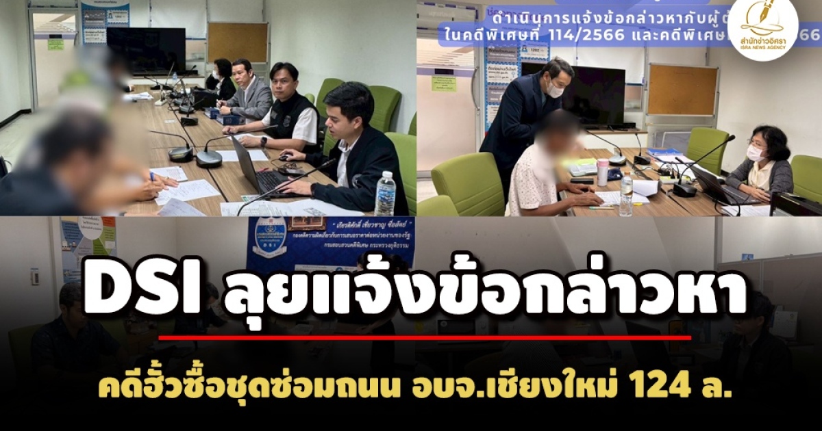 กรมสอบสวนคดีพิเศษ ลุยแจ้งข้อกล่าวหาผู้ชนะประมูล-คู่เทียบ-เจ้าหน้าที่รัฐ นับสิบราย คดีฮั้วโครงการจัดซื้อชุดซ่อมถนนลาดยาง Recycling อบจ.เชียงใหม่ รัฐเสียหาย 124 ล้าน หลัง ป.ป.ช. ส่งคืนเรื่องกล่าวหาให้ดำเนินการเอง