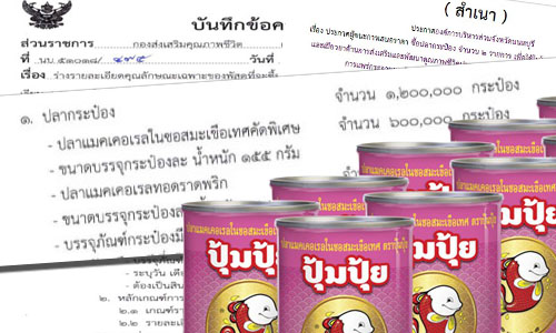 - อบจ.นนทบุรี ตั้งงบประมาณในการจัดซื้อปลากระป๋อง อยู่ที่ 24,000,000 บาท จัดซื้อ 2 รายการ จำนวน 1,200,000 กระป๋อง แยกเป็นปลาแมคเคอเรลในซอสมะเขือเทศ คัดพิเศษ จำนวน 600,000 กระป๋อง ปลาแมคเคอเรลทอดราดพริก จำนวน 600,000 กระป๋อง แบ่งการส่งมอบเป็น 5 งวด ชนิดละ 120,000 กระป๋อง/งวด