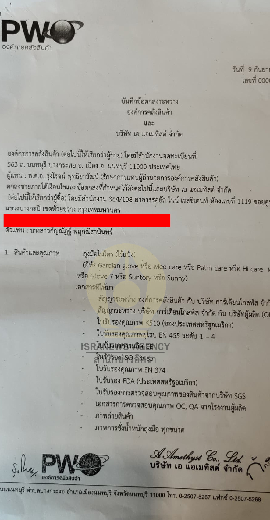 "โชว์ครบ 4 หน้า! สัญญาถุงมือยาง อคส.แสนล้าน-ข้อสังเกตหลักประกัน 200 ล.-ลูกค้าปริศนา?"