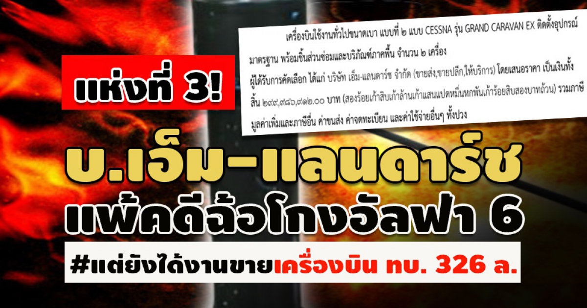 บริษัท เอ็ม-แลนดาร์ช จำกัด นับเป็นเอกชนแห่งที่ 3 ที่เคยปรากฎชื่อเป็นคู่สัญญาขายเครื่องอัลฟ่า 6 ให้กับกองบัญชาการกองทัพไทย และจังหวัดพิษณุโลก และมีคดีฟ้องร้องข้อหาฉ้อโกงกับทั้ง 2 หน่วยงาน ก่อนที่ศาลชั้นต้นจะตัดสินให้แพ้คดีไป ในช่วงเดือนปี 2561 และเดือนกันยายน 2562