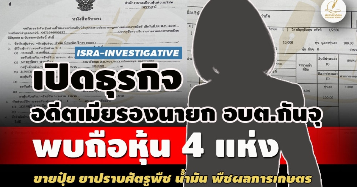 ตามส่องธุรกิจอดีตเมียรองนายก อบต.กันจุ จ.เพชรบูรณ์ คดียื่นบัญชีฯเท็จ ป.ป.ช. ก่อนศาลฎีกาฯยกคำร้อง ไม่มีประจักษ์พยานแน่ชัดหลังจดทะเบียนหย่ายังอยู่กินฉันสามีภรรยา พบถือหุ้น 4 แห่ง ขายปุ๋ย ยาปราบศัตรูพืช น้ำมัน พืชผลการเกษตร ยังเปิดดำเนินการ