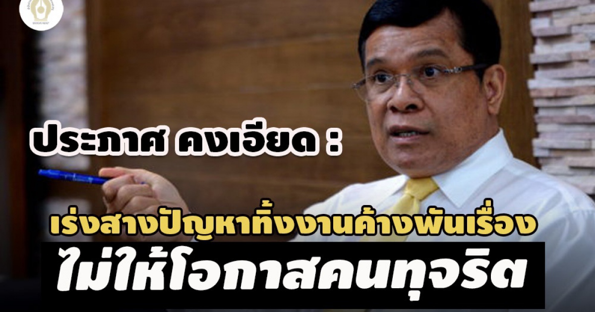 "ปัญหาเรื่องทิ้งงานค้าง ปัจจุบันมีเป็นพันเรื่อง สะสมมานานแล้ว ผมต้องเข้ามาสะสาง ...ถ้าช้าจะทำให้คนทิ้งงานยังไปรับงานกับภาครัฐได้ เท่ากับไปสนับสนุนและให้โอกาสคนไม่สุจริต"