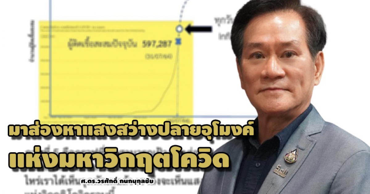 (4) ภาพที่ 5 คือกราฟที่ผมขอเชิญผู้สนใจมาเฝ้าสอดส่อง (Monitor) ว่าเกิดจุดหักเหหรือยัง เมื่อเกิดแล้ว เราถึงจะเห็นแสงริบหรี่ที่ปลายอุโมงค์แห่งมหาวิกฤติรอบนี้ ระหว่างนี้ เรายังต้องเร่งระดมฉีดวัคซีนเพื่อสร้างภูมิคุ้มกันหมู่โดยเร็ว