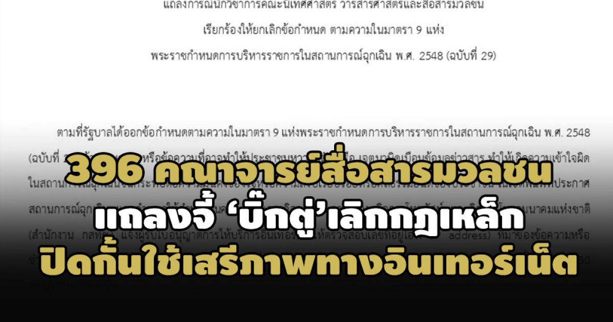 ตามที่รัฐบาลได้ออกข้อกำหนดตามความในมาตรา 9 แห่งพระราชกำหนดการบริหารราชการในสถานการณ์ฉุกเฉิน พ.ศ. 2548 (ฉบับที่ 29) ห้ามเสนอข่าวหรือข้อความที่อาจทำให้ประชาชนหวาดกลัว หรือ เจตนาบิดเบือนข้อมูลข่าวสาร ทำให้เกิดความเข้าใจผิดในสถานการณ์ฉุกเฉินจนกระทบต่อความมั่นคงของรัฐหรือความสงบเรียบร้อยหรือศีลธรรมอันดีของประชาชน ในเขตพื้นที่ที่ประกาศสถานการณ์ฉุกเฉิน และกำหนดให้สํานักงานคณะกรรมการกิจการกระจายเสียง กิจการโทรทัศน์ และกิจการโทรคมนาคมแห่งชาติ (สํานักงาน กสทช.) แจ้งผู้รับใบอนุญาตการให้บริการอินเทอร์เน็ตให้ตรวจสอบเลขที่อยู่ไอพี (IP address) ที่มาของข้อความหรือข่าวสารในลักษณะตามข้อกำหนดดังกล่าว ก่อนส่งเรื่องให้สำนักงานตำรวจแห่งชาติดำเนินคดีต่อไป โดยจะมีผลตั้งแต่วันที่ 30 กรกฎาคม 2564 นั้น