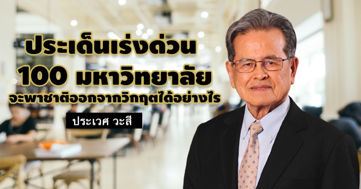 ประเทศไทยมีสถาบันอุดมศึกษาทั้งของรัฐและเอกชนกว่า 100 แห่ง มีนิสิตนักศึกษารวมกันกว่า 1 ล้านคน มีคณาจารย์นักวิชาการหลายแสนคน เป็นขุมกำลังทางปัญญาที่ใหญ่ที่สุด ทำอย่างไรขุมกำลัง 100 มหาวิทยาลัย จะเป็นพลังทางปัญญาพาชาติออกจากวิกฤต เป็นประเด็นเร่งด่วนที่ต้องตีโจทย์ให้แตกและลงมือปฏิบัติโดยเร็ว