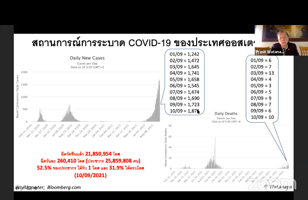 แต่สำหรับประเทศออสเตรเลีย ที่ฉีดวัคซีนได้เพียง 21,850,954 โดส ฉีดเข็มแรกได้เพียง 52.5% และเข็มที่สอง 31.9% ทำให้ขณะนี้มียอดติดเชื้อเพิ่มสูงขึ้นมา และพบผู้ติดเชื้อในเด็กเพิ่มมากขึ้น แต่รัฐบาลได้รีบสั่งล็อกดาวน์ไปแล้ว ซึ่งเหมือนกับที่ผ่านมาก่อนหน้านี้หลายๆ อย่างออสเตรเลียรีบคุมเข้มมาตรการมาก จึงทำให้เขาสามารถควบคุมการระบาดได้ดี และมียอดผู้เสียชีวิตในอัตราต่ำ