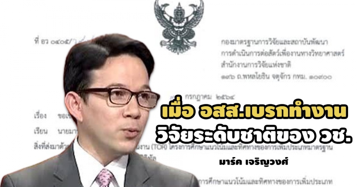 3. ต่อมาผมได้รับแจ้งว่าการนำเสนอทำให้คณะกรรมการพิจารณาว่าคณะทำงานของผมสามารถที่จะทำโครงการวิจัยในหัวข้อนี้ได้ จึงตัดสินให้ผมเป็นผู้รับโครงการวิจัยนี้ แต่เนื่องจากผมเป็นข้าราชการ จึงได้แจ้งให้ทางสำนักงานการวิจัยแห่งชาติช่วยทำหนังสือถึงสำนักงานอัยการสูงสุด เพื่อขออนุญาตให้ผมทำวิจัยในโครงการดังกล่าวแม้จะเป็นการดำเนินการนอกเวลาราชการก็ตาม เพื่อให้เป็นไปตามระเบียบราชการ และเมื่อวันที่ 30 ส.ค. 2564 ทาง วช. ก็ได้กรุณาทำหนังสือดังกล่าวถึงท่านอัยการสูงสุดตามที่ผมร้องขอ โดยในหนังสือได้ระบุอย่างชัดเจนว่า “เป็นการทำวิจัยนอกเวลาราชการ ซึ่งจะไม่ส่งผลกระทบต่อการปฏิบัติราชการของ ดร.มาร์ค เจริญวงศ์ แต่ประการใด”