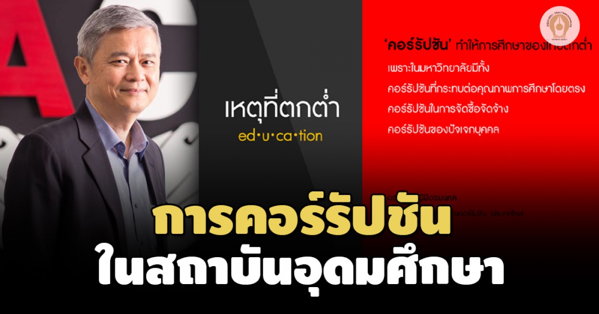 ‘คอร์รัปชัน’ คือคำตอบว่าทำไมการศึกษาของไทยจึงตกต่ำ เพราะในมหาวิทยาลัยมีทั้งคอร์รัปชันที่กระทบต่อคุณภาพการศึกษาโดยตรง คอร์รัปชันในการจัดซื้อจัดจ้างและคอร์รัปชันของปัจเจกบุคคล