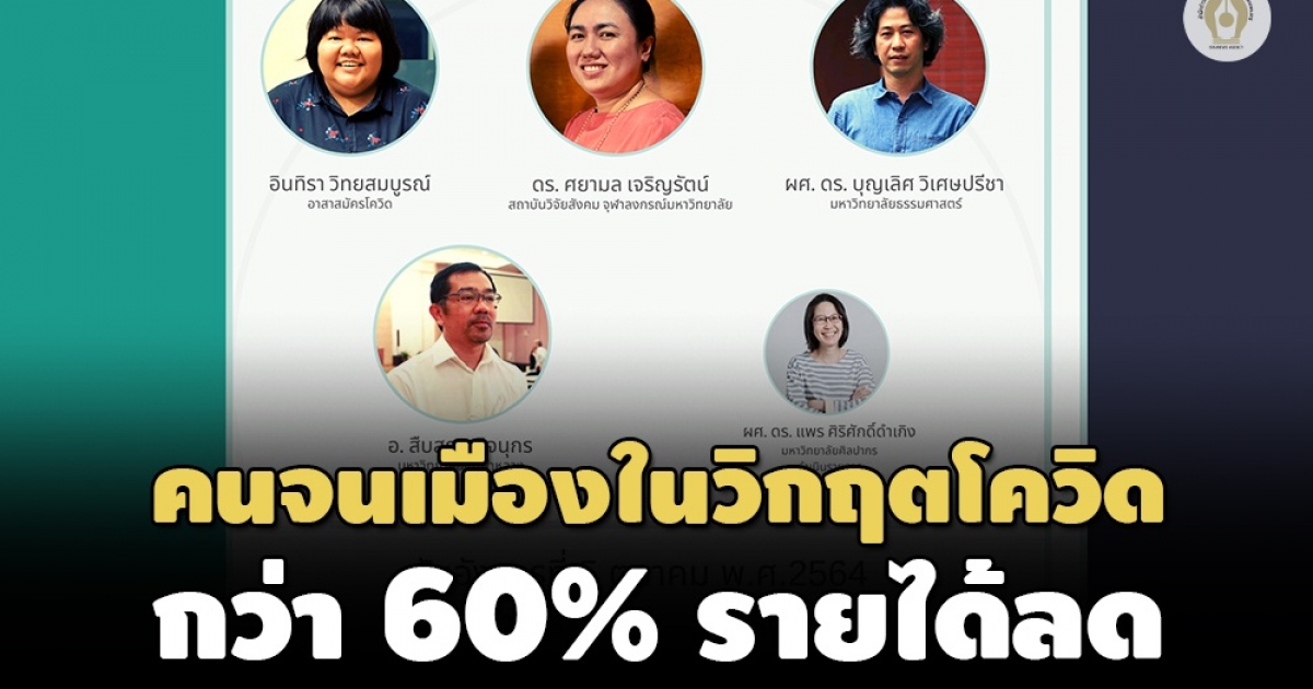 “…คนจนเมืองส่วนใหญ่ ทำงานในภาคที่ไม่เป็นทางการ ขาดความมั่นคง และไม่ได้รับสวัสดิการสังคม โดยได้รับผลกระทบด้านการทำงานจากวิกฤตโควิด ประกอบด้วย นายจ้างเลิกจ้าง 18.87% นายจ้างให้ลดเวลาทำงาน 18% สถานที่ค้าขายถูกปิด 18.22% ประกอบอาชีพค้าขายและค้าขายได้น้อยลง 18.22% ประกอบอาชีพอิสระและไม่มีผู้ว่าจ้างหรือมีลูกค้าใช้บริการ 18.44% และอื่นๆ 8.24% ส่งผลให้รายได้ลดลงเกือบทั้งหมด ราว 60.24%…”
