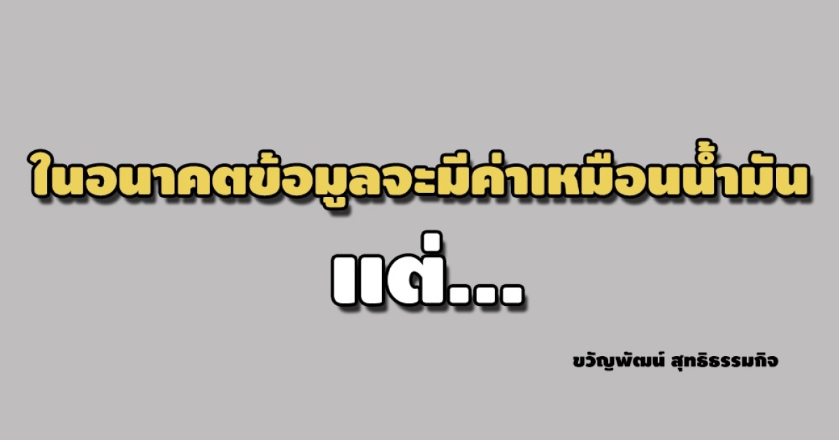 ข้อมูลก็คงจะเหมือนน้ำมัน ถ้าไม่ลงทุนหา ขุดเจาะ และเอามากลั่น คุณค่าของน้ำมันก็คงไม่มาก