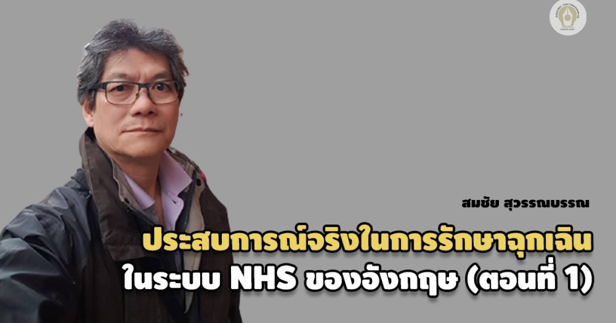 ผมอยากเล่าเรื่องประสบการณ์ส่วนตัวในการเข้ารักษาพยาบาลฉุกเฉินในระบบ NHS ของอังกฤษ เพราะไทยและอังกฤษมีจำนวนประชากรเกือบเท่าๆกัน ระบบโครงสร้างทางสาธารณะสุขของสองประเทศอาจจะมีส่วนคล้ายและส่วนต่าง แล้วแต่บริบทพัฒนาการ หรือแนวคิดที่ต่างกัน หากใครมีประสบการณ์ที่เหมือนหรือต่างกันอย่างไร ก็จะนำมาแบ่งปันกันได้ โดยเฉพาะปัญหาจำนวนประชากรสูงวัยที่อังกฤษเพิ่มมากขึ้นอย่างผิดสัดส่วนเป็นภาระหนักของสังคม คล้ายๆ กัน