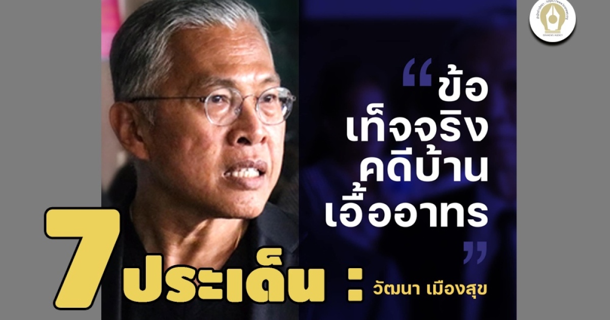 หมายเหตุ สำนักข่าวอิศรา (www.isranews.org) : เมื่อวันที่ 31 มกราคม 2565 นายวัฒนา เมืองสุข อดีตรัฐมนตรีว่าการกระทรวงการพัฒนาสังคมและความมั่นคงของมนุษย์ ยุครัฐบาลนายทักษิณ ชินวัตร ได้โพสต์ข้อความในเฟซบุ๊กส่วนตัว ชื่อ Watana Muangsook ชี้แจงข้อเท็จจริง 7 ประเด็นเกี่ยวกับคดีทุจริตบ้านเอื้ออาทร ซึ่งก่อหน้านี้ เมื่อ 24 ก.ย.2563 ศาลฎีกาแผนกคดีอาญาผู้ดำรงตำเเหน่งทางการเมือง อ่านคำพิพากษาคดีทุจริตโครงการบ้านเอื้ออาทรเสร็จสิ้น โดยสั่งให้จำคุกนายวัฒนา จำเลยที่ 1 เป็นเวลา 99 ปี ตามกฎหมายให้จำคุกได้สูงสุด 50 ปี พร้อมจำคุกเสี่ยเปี๋ยง จำเลยที่ 4 เป็นเวลา 66 ปี ให้จำคุกได้สูงสุด 50 ปี จำคุกจำเลยที่ 5 เป็นเวลา 20 ปี จำเลยที่ 6 เป็นเวลา 44 ปี จำเลยที่ 7 เป็นเวลา 32 ปี ปรับจำเลยที่ 8 2 แสนกว่าบาท และจำคุกนายอริสมันต์ จำเลยที่ 10 เป็นเวลา 4 ปี ยกฟ้องจำเลยที่ 2, 3, 9, 11-14 คดีนี้ ในส่วนของนายวัฒนา ได้อุทธรณ์คดี ในชั้นวินิจฉัยอุทธรณ์ของศาลฎีกาแผนกคดีอาญาผู้ดำรงตำเเหน่งทางการเมือง ศาลฯ นัดฟังคำพิพากษาวันที่ 4 มี.ค.นี้