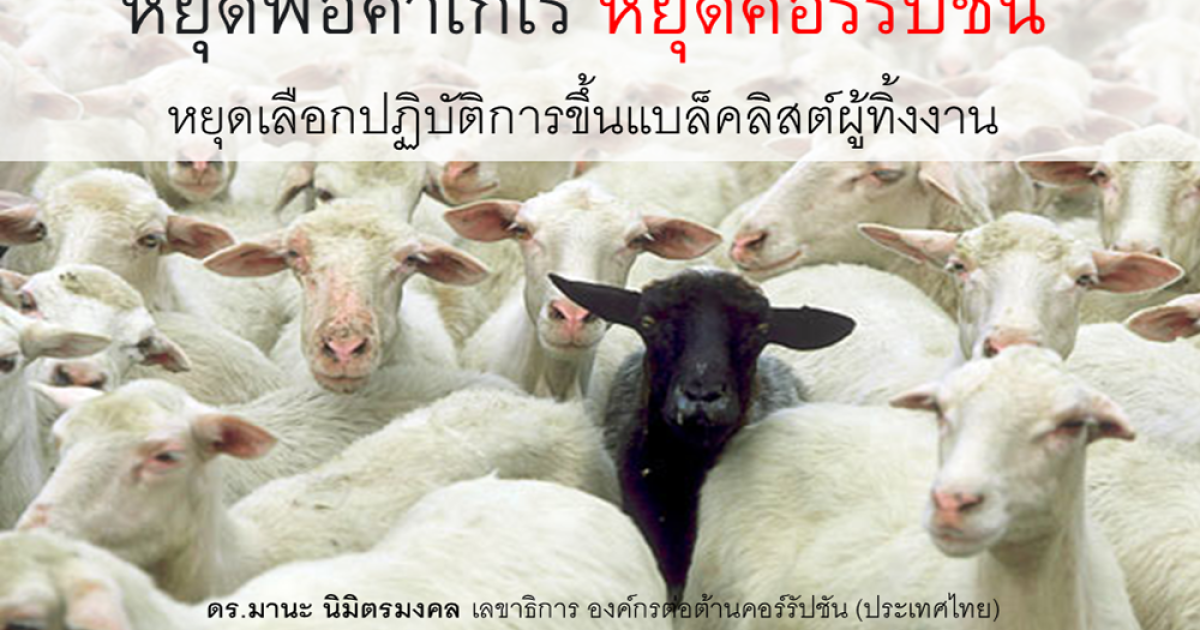 "การขึ้นบัญชีผู้ทิ้งงานหรือขึ้นแบล็คลิสต์ เป็นมาตรการเพื่อรักษาผลประโยชน์ของรัฐ ด้วยการประจานและปิดโอกาสไม่ให้พวกคนโกงหรือชอบเอาเปรียบเข้ามาสร้างความเสียหายให้กับรัฐได้อีก” ทุกคนจึงต้องใส่ใจ ไม่เช่นนั้นประเทศไทยจะไม่มีทางควบคุมคอร์รัปชันในการจัดซื้อจัดจ้างฯ ได้เลย