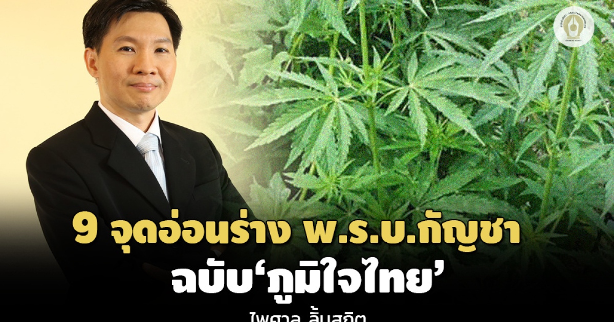 หมายเหตุสำนักข่าวอิศรา (www.isranews.org) : นายไพศาล ลิ้มสถิต กรรมการบริหารศูนย์กฎหมาย สุขภาพและจริยศาสตร์ คณะนิติศาสตร์ มหาวิทยาลัยธรรมศาสตร์ เขียนบทความเรื่อง ‘จุดอ่อนของร่างพระราชบัญญัติกัญชา กัญชง พ.ศ. ... ฉบับภูมิใจไทย’ โดยมีประเด็นที่น่าสนใจ ดังนี้