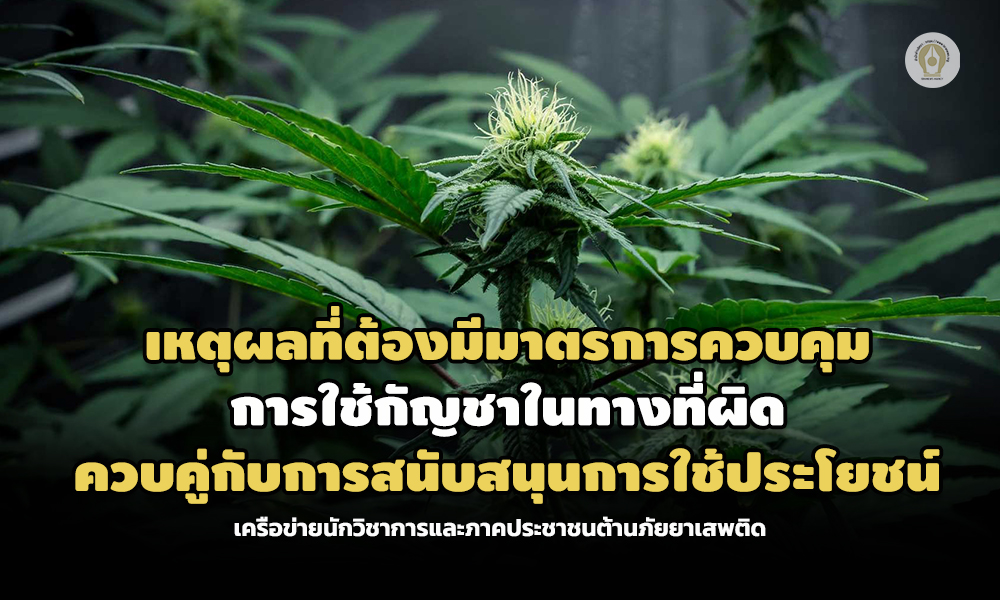 “เหตุผล ความจำเป็น ที่จะต้องมีมาตรการควบคุมการใช้กัญชาในทางที่ผิดที่เพียงพอ ควบคู่ไปกับมาตรการสนับสนุนการใช้ประโยชน์จากกัญชา”