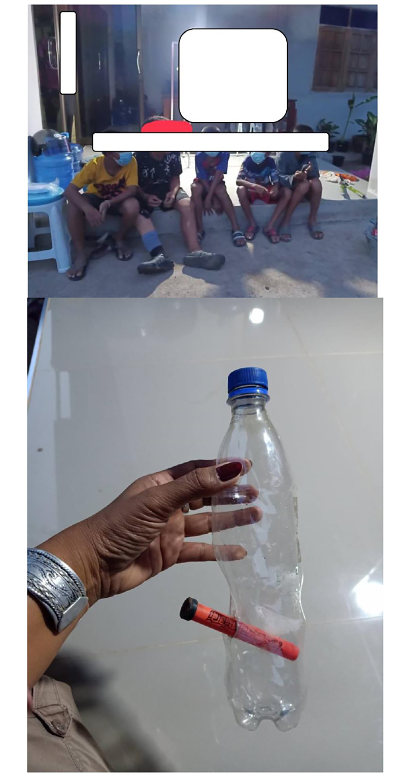 ภาพจริงถ่ายในประเทศไทยเมื่อต้นเดือนเมษายน พ.ศ.2565 (ประมาณสองเดือนหลังจากที่ประกาศกระทรวงสาธารณสุข เรื่องระบุรายชื่อยาเสพติดให้โทษในประเภท 5 ฉบับลงวันที่ 8 กุมภาพันธ์ พ.ศ.2565 ประกาศปลดกัญชาจากการเป็นยาเสพติด) เป็นภาพเด็กเยาวชนอายุประมาณ 9-12 ปี ในจังหวัดหนึ่งในภาคเหนือ รวมกลุ่มกันสูบกัญชาที่โดยได้กัญชาจากบ้านเพื่อน สูบด้วยอุปกรณ์ที่ทำขึ้นกันเองโดยดูจาก youtube