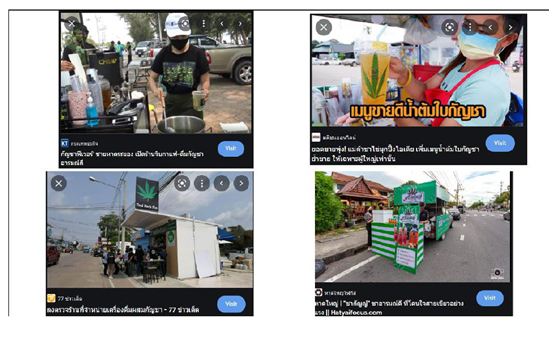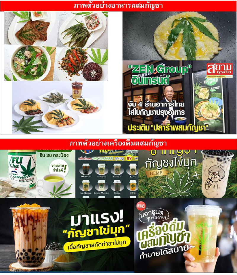 ภาคผนวก 3: (ก) ตัวอย่างการปลูกต้นกัญชาหลังบ้าน ภาพช่อดอกกัญชา ภาพเด็ก วัยรุ่นและครอบครัวกับกัญชา (ข) ผลิตภัณฑ์อาหารและเครื่องดื่มที่ผสมกัญชา และการขายในรูปแบบต่างๆ ของประเทศไทยและประเทศแคนาดา และ (ค) ผลการวิจัยวิเคราะห์ปริมาณสาร THC ในอาหารและเครื่องดื่มที่ผู้ขายรายงานว่ามีกัญชาเป็นส่วนผสมอยู่ โดยศูนย์วจัยยาเสพติด วิทยาลัยวิทยาศาสตร์สาธารณสุข จุฬาลงกรณ์มหาวิทยาลัย