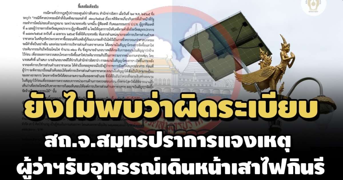 จากเนื้อหาของข่าวดังกล่าวนั้น จังหวัดสมุทรปราการขอเรียนชี้แจงข้อเท็จจริงเพื่อให้มีความเข้าใจ ที่ถูกต้องตรงกันเกี่ยวกับการดําเนินการในกรณีข้างต้น ดังนี้
