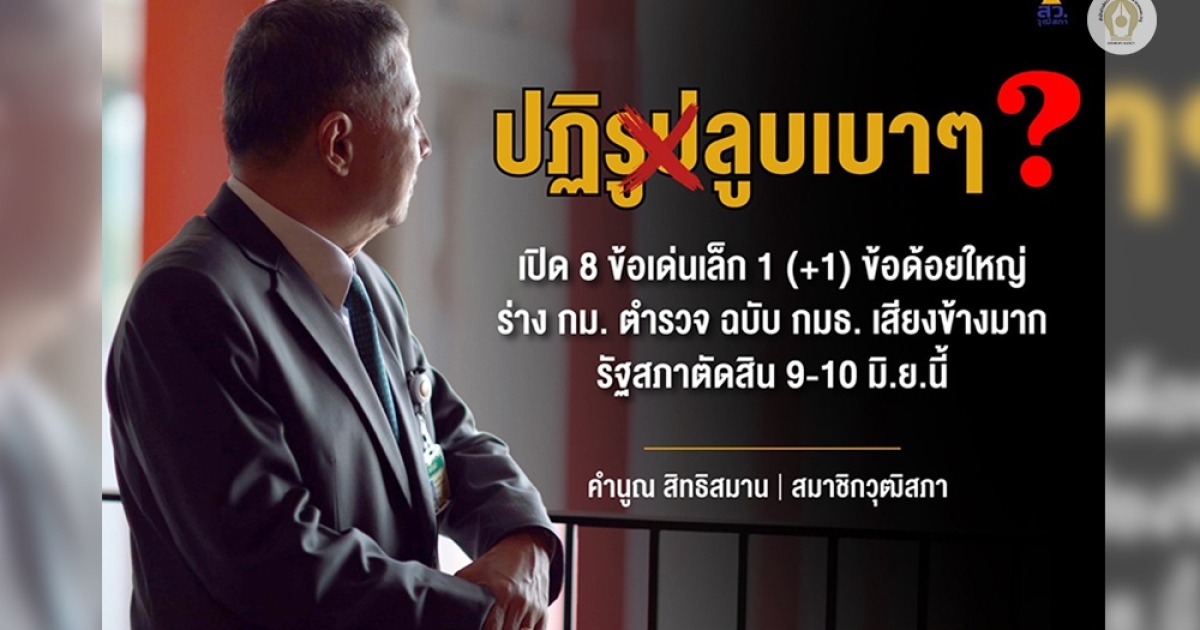 เปิด 8 ข้อเด่นเล็ก 1 ข้อด้อยใหญ่ ร่างกม.ตำรวจฉบับกมธ.เสียงข้างมาก รัฐสภาตัดสิน 9-10 มิ.ย.นี้