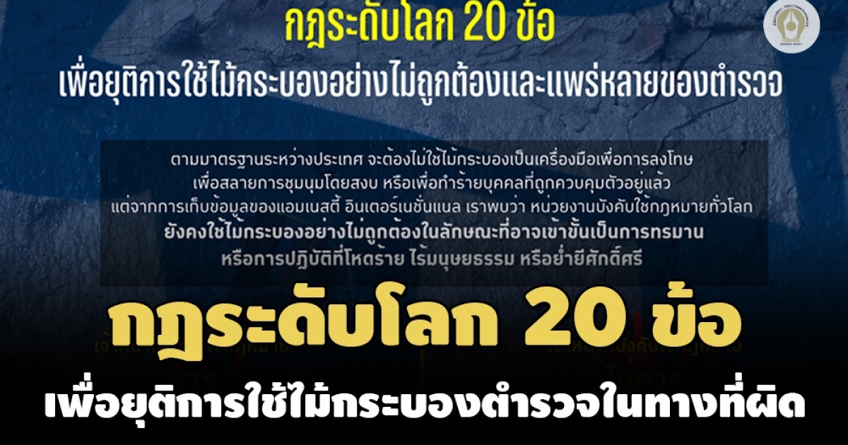 นอกจากการเผยแพร่รายงานของแอมเนสตี้ อินเตอร์เนชั่นแนล ยังมีการเสนอกฎ 20 ข้อของการใช้ไม้กระบองในลักษณะที่สอดคล้องตามหลักสิทธิมนุษยชน เป็นเนื้อหาที่มาจากหลักการพื้นฐานขององค์การสหประชาชาติว่าด้วยการใช้กำลังและอาวุธโดยเจ้าหน้าที่ผู้บังคับใช้กฎหมาย รวมทั้งแนวปฏิบัติเมื่อปี 2558 ของแอมเนสตี้เกี่ยวกับการปฏิบัติตามหลักการพื้นฐานดังนี้