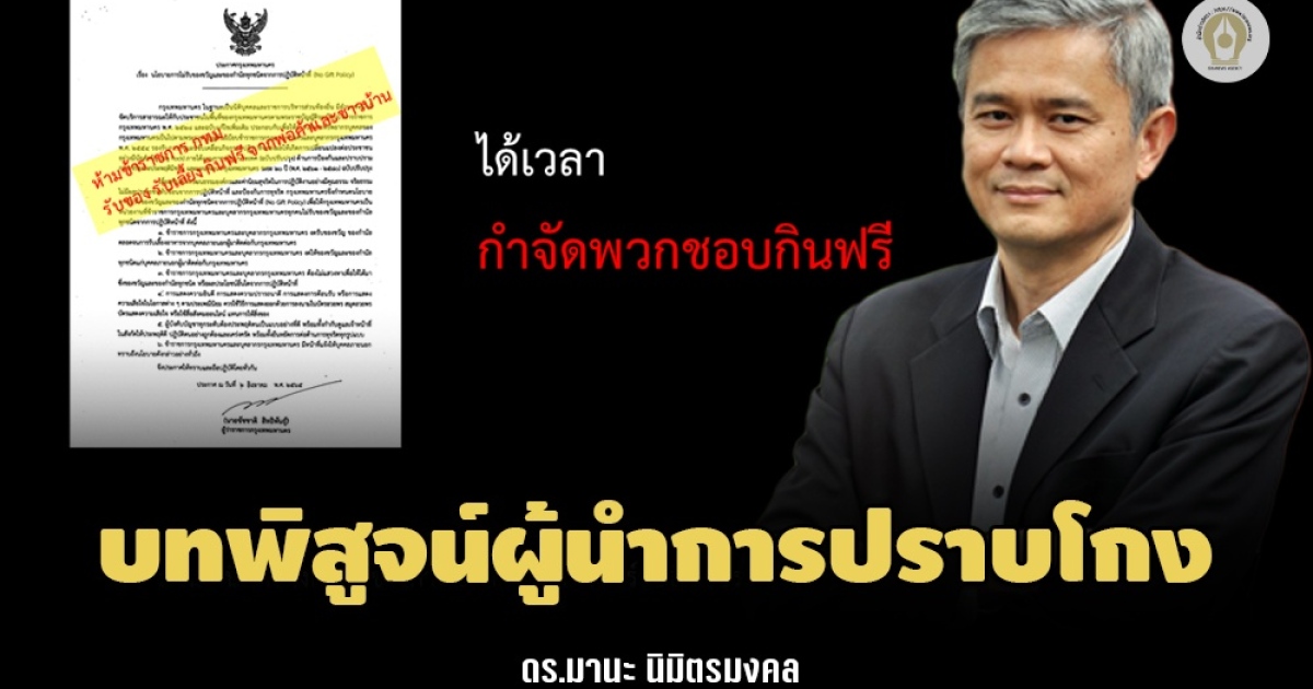 กล้ามาก..การที่ผู้ว่าฯ กทม. ออกประกาศแบบเข้มข้น ห้ามข้าราชการรับเลี้ยงรับกินฟรี ห้ามรับของขวัญของกำนัลจากพ่อค้าและชาวบ้าน เพราะไม่มีทางเป็นจริงได้ร้อยเปอร์เซ็นต์ แต่นี่คือก้าวสำคัญที่พิสูจน์ถึงบทบาทของ 'ผู้นำ..กับการปราบโกง' ที่ทุกองค์กรทำได้และต้องทำ หากยังต้องการพูดกับประชาชนได้เต็มปากว่า ตนเกลียดคอร์รัปชัน