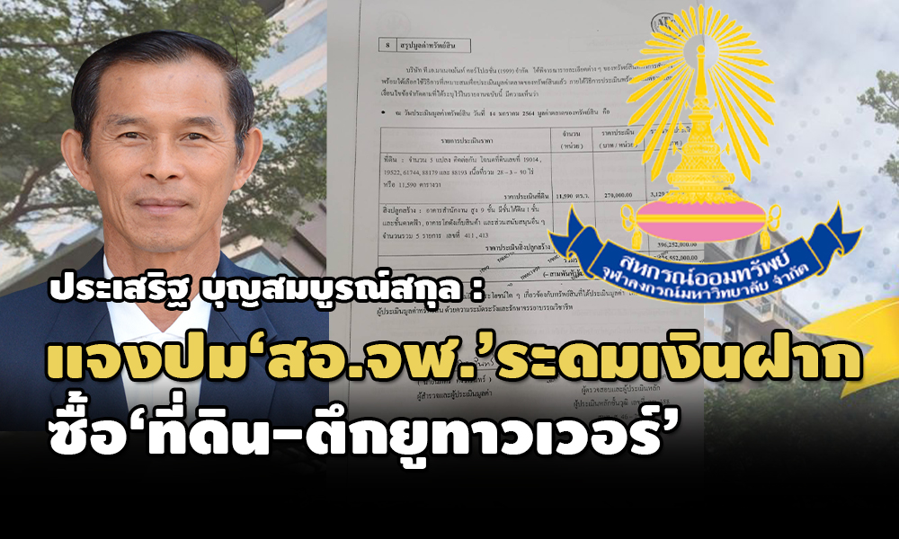 “เรามีโอกาสได้กำไร เพราะนี่ไม่ใช่ซื้อหุ้น แต่เป็นการซื้อที่ดินและตัวอาคาร โดยในปี 2563 มีการประเมินว่าที่ดินและอาคารยูทาวเวอร์ มีราคา 2,000 ล้านบาท แต่พอมาปี 2564 ราคาเพิ่มเป็น 3,500 ล้านบาท ดังนั้น ในอีก 7 ปีข้างหน้า ราคาน่าจะเพิ่มขึ้นอีก เพราะเมื่อมีความเจริญขึ้น ราคาที่ดินและตึก ก็สูงขึ้นแน่ ดังนั้น เรื่องนี้ไม่ใช่ว่า เราประมาทเลินเล่อ” ประเสริฐ ย้ำ