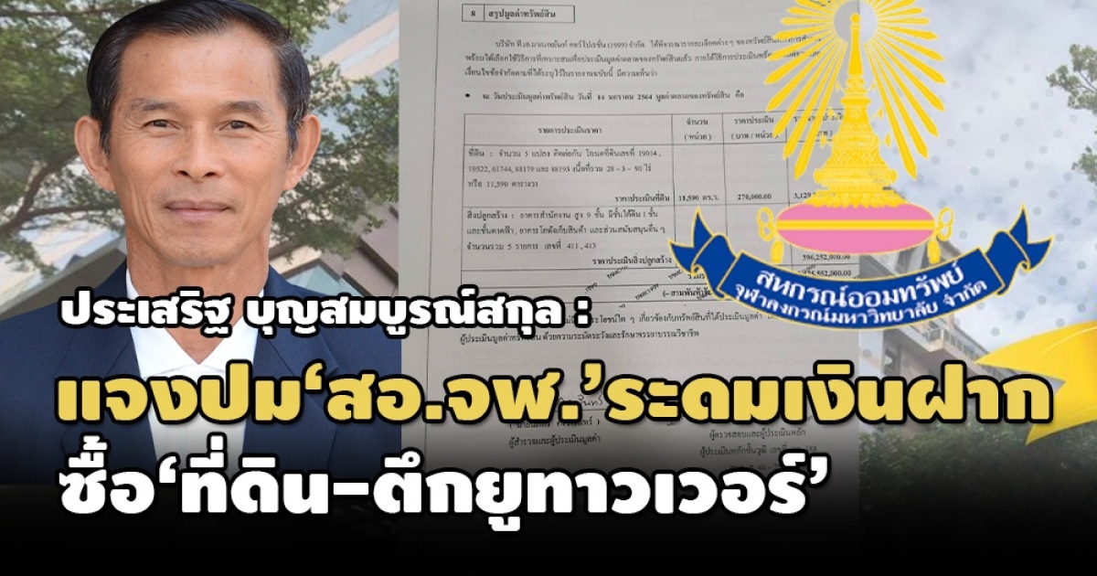 ร้อง'นายทะเบียน' ลงโทษกก.'สหกรณ์ออมทรัพย์จุฬาฯ' ปมอนุมัติซื้อตึกยูทาวเวอร์ 2.5 พันล.