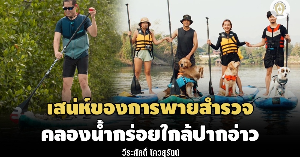 ซับบอร์ดมีแรงพยุงดีมาก คนน้ำหนักเยอะก็สามารถใช้ซับบอร์ดได้ไม่ยาก การขึ้นลงก็ง่ายกว่า วันนี้มีผู้ร่วมกิจกรรมนำสุนัขไซบีเรียนฮัสกี้ ตัวโตสง่า อายุเพิ่งจะขวบเดียว สวมเสื้อชูชีพช่วยพยุงพร้อมสายจูงมายืนบนบอร์ดพายไปด้วยกัน สร้างสีสรรให้คณะสำรวจกิจกรรมเป็นอย่างดี