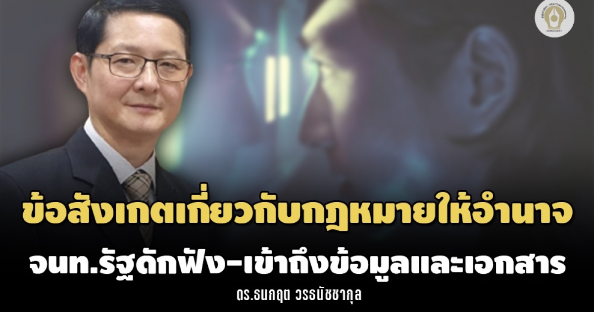 "...ข้อสังเกตสำคัญที่น่านำมาพิจารณาอีกเรื่องหนึ่ง คือ บรรดากฎหมายที่ให้อำนาจเจ้าหน้าที่รัฐในการเข้าถึงเอกสารหรือข้อมูลข่าวสารดังกล่าวมาข้างต้น ไม่มีกฎหมายฉบับใดเลยที่กำหนดโทษเฉพาะสำหรับเจ้าหน้าที่รัฐที่นำข้อมูลข่าวสารไปใช้ประโยชน์อื่นที่นอกเหนือจากการสืบสวนหรือใช้เป็นพยานหลักฐานในการดำเนินคดี มีแต่เพียงโทษที่กำหนดไว้สำหรับการกระทำความผิดฐานเปิดเผยข้อมูลหรือข่าวสารเท่านั้นจึงถือเป็นช่องว่างของกฎหมายในเรื่องนี้..."