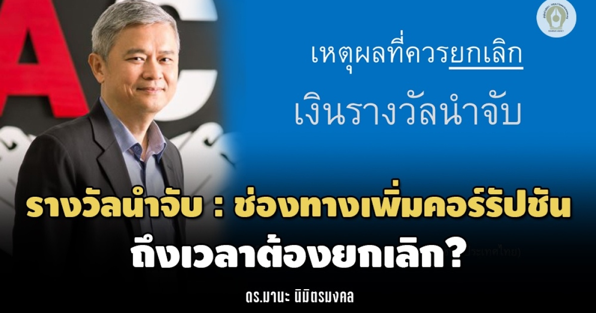 - บทความนี้ปรับปรุงจาก “รางวัลนำจับ: รัฐได้ไม่คุ้มเสีย” โดยผู้เขียน เผยแพร่เมื่อ 3 มกราคม 2560