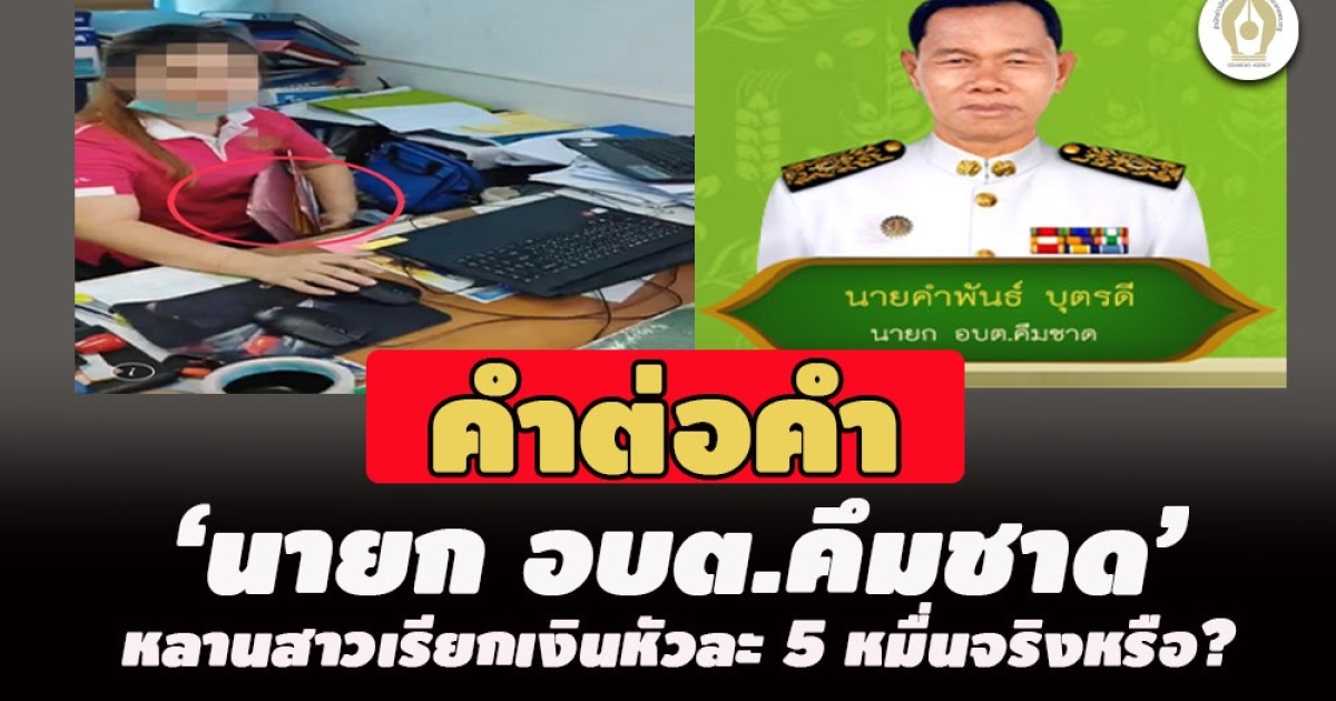 ทั้งหมดนี่ คือ คำชี้แจงอีกด้านของ นายคำพันธ์ นายก อบต.คึมชาด ญาติแท้ๆ ของ นางสาว ว. ผู้ช่วยเจ้าพนักงานพัสดุ อบต.คึมชาด ที่ถูกเจ้าหน้าที่จับสด พร้อมเงินของกลางจำนวน 1 แสนบาท ที่ปรากฏเป็นข่าวดังอยู่ในขณะนี้