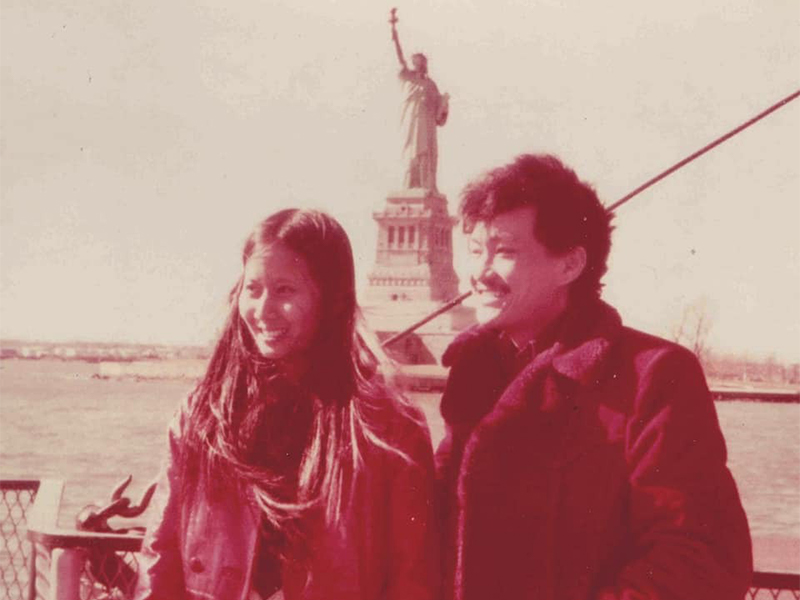ทักษิณ ชินวัตร (ขวา) และคุณหญิงพจมาน ดามาพงศ์ (ซ้าย) เมื่อปี 2517 ที่ประเทศสหรัฐอเมริกา ภาพจาก Facebook: Ing Shinawatra