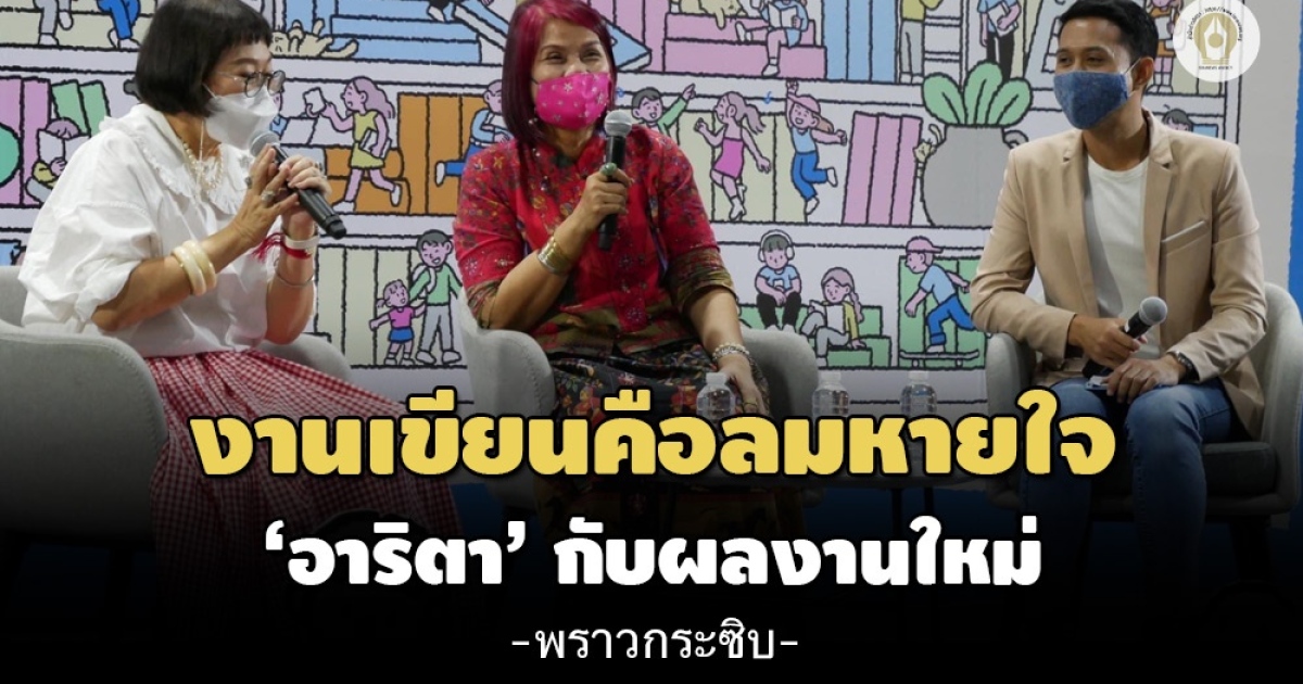 การสนทนาเริ่มต้นขึ้น อาริตา บอกว่า เบื้องแรก ไม่คิดว่าการเขียนนวนิยาย จะกลายเป็นอาชีพจนถึงปัจจุบันนี้ แต่ปรากฎว่า เมื่อเขียนมาเรื่อย ๆ กลายเป็นว่า “มนต์ของน้ำหมึก” ฝังลึกลงไป และเป็นความรู้สึกว่า เป็นข้อความที่เราคุยกับคนอ่าน ทำให้เขียนมาเรื่อย ๆ มีคนตอบรับ แต่ไม่ได้ดังหรือหวือหวา แต่มีคนรออ่านงานของเรา