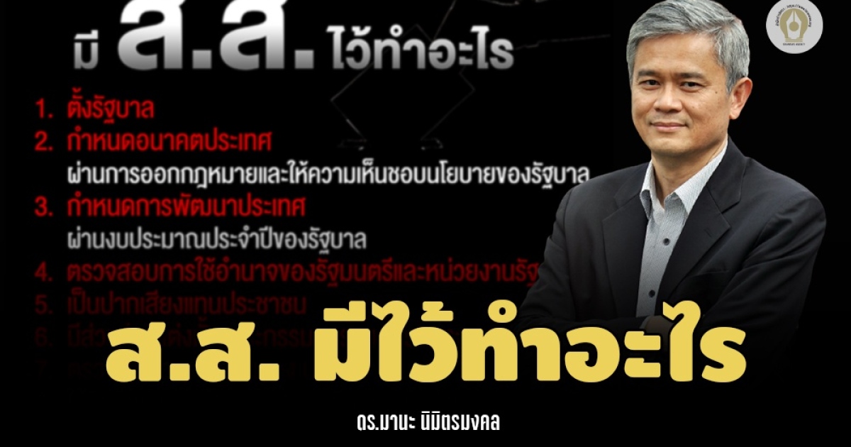 “ส.ส. มีไว้ทำอะไร” เป็นสาระที่เราควรเข้าใจร่วมกัน เพื่อตรวจสอบว่า ส.ส. แต่ละคนใช้อำนาจหน้าที่ของตนอย่างมีธรรมภิบาล รับผิดชอบ ซื่อสัตย์ต่อแผ่นดินและคนไทยเพียงใด