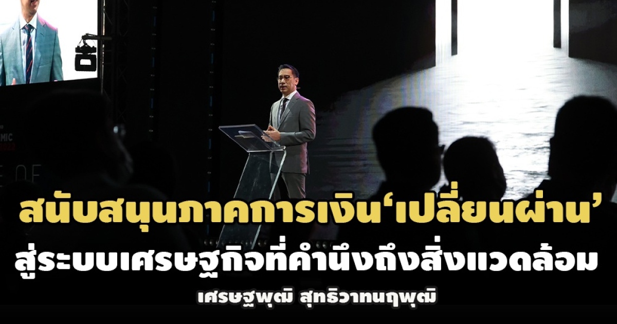 “…ในฐานะธนาคารกลางที่มีพันธกิจในการเสริมสร้างเศรษฐกิจการเงินที่มีเสถียรภาพและมีการพัฒนาอย่างยั่งยืนและทั่วถึง ธปท. จึงมีบทบาทในการส่งเสริม least-disruptive transition ไปสู่ระบบเศรษฐกิจที่คำนึงถึงสิ่งแวดล้อม โดยผ่านระบบการเงินและสถาบันการเงินภายใต้การกำกับ…”