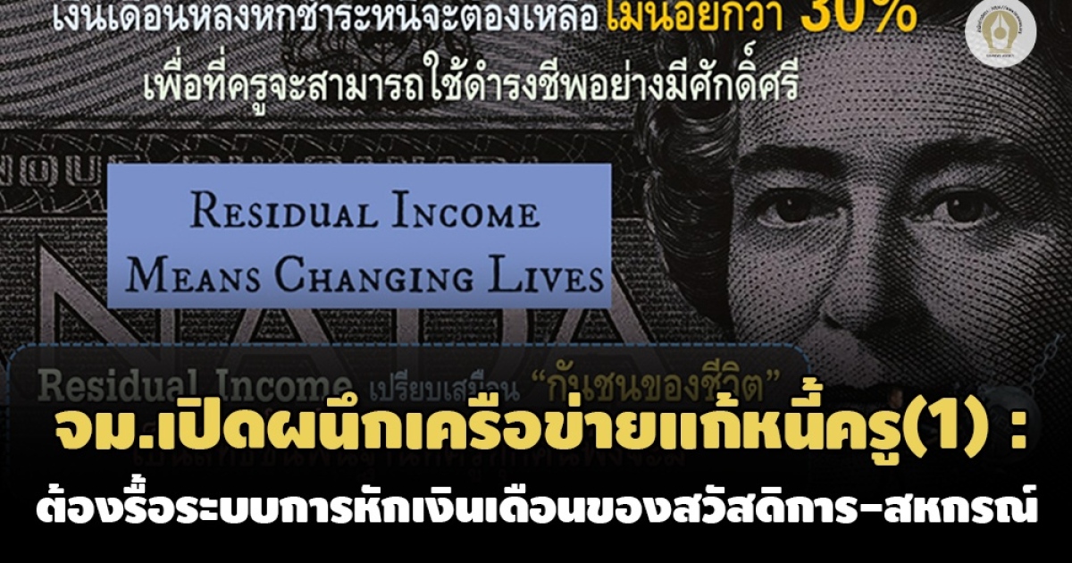 ปัญหาเชิงโครงสร้างเรื่องที่ 1 การที่เงินเดือนในแต่ละเดือนหลังจากที่หักชำระหนี้แก่เจ้าหนี้สวัสดิการและสหกรณ์ออมทรัพย์ครูแล้ว เหลือไม่เพียงพอที่ครูจะใช้ดำรงชีพอย่างมีศักดิ์ศรี กล่าวคือ เหลือน้อยกว่าร้อยละ 30 ของเงินเดือน ไม่สอดคลัองกับระเบียบของกระทรวงศึกษาธิการว่าด้วยการหักเงินเดือนเพื่อชำระหนี้สวัสดิการและสหกรณ์ปี พ.ศ.2551 และขัดกับคำพิพากษาของศาลปกครองกลางที่สร้างความเดือดร้อนในวงกว้าง