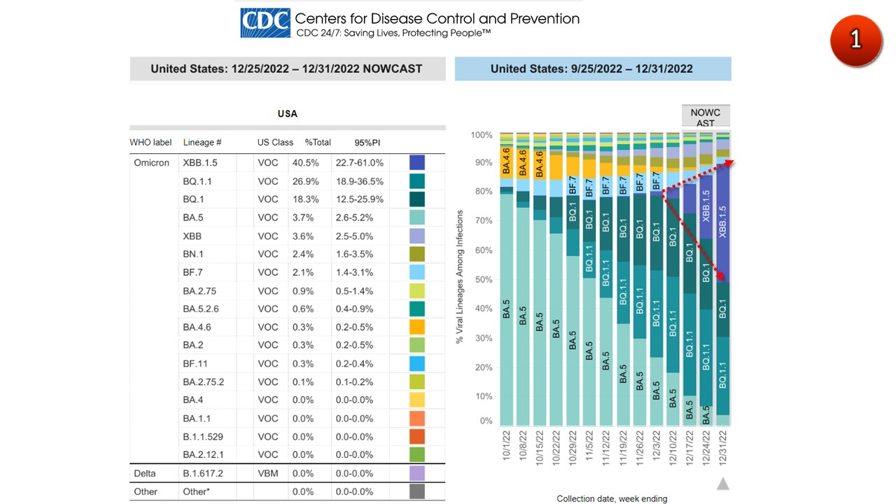 ศูนย์ควบคุมโรคติดต่อสหรัฐอเมริกา (Centers for Disease Control and Prevention, CDC)เมื่อวันที่ 30 ธันวาคม 2565 แถลงว่าได้เกิดการแพร่ระบาดของโอมิครอน “XBB.1.5” ในสหรัฐอเมริกาเป็นสองเท่าในเวลาเพียง 1 สัปดาห์ ปัจจุบันมีส่วนแบ่งการระบาดในผู้ติดเชื้อรายใหม่ถึง 40.5%