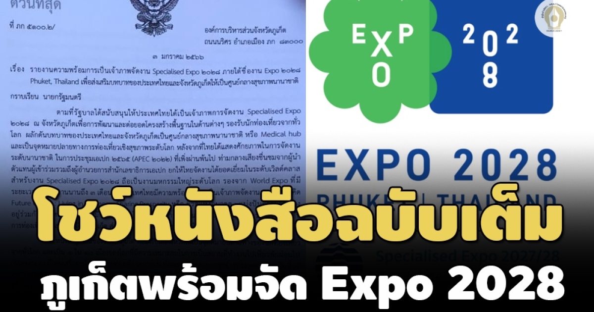 ในการนี้ องค์การบริหารส่วนจังหวัดภูเก็ตใคร่ขอรายงานความพร้อมของจังหวัดภูเก็ตในการต้อนรับนักท่องเที่ยวที่เดินทางมายังจังหวัดภูเก็ตอย่างเต็มศักยภาพ ด้วยเอกลักษณ์และวัฒนธรรม อันโดดเด่นโดยเฉพาะอย่างยิ่งแหล่งท่องเที่ยวเชิงสุขภาพที่สําคัญระดับโลก จึงทําให้จังหวัดภูเก็ตมีความพร้อม ในการเป็นเจ้าภาพจัดงาน Specialised Expo 2028 ภายใต้ชื่อ งาน Expo 2028 - Phuket, Thailand เพื่อส่งเสริมบทบาทของประเทศไทยและจังหวัดภูเก็ตให้เป็นศูนย์กลางสุขภาพนานาชาติ หรือ Medical hub และเป็นจุดหมายสู่การท่องเที่ยวเชิงสุขภาพระดับโลก นับเป็นความภาคภูมิใจของคนในจังหวัดภูเก็ตและคนไทยทั้งประเทศที่มุ่งมั่นร่วมมือร่วมใจในการต้อนรับและแสดงความขอบคุณอันเป็นโอกาสดีในการแสดง ให้นานาชาติเห็นถึงความพร้อมและศักยภาพของประเทศไทยและจังหวัดภูเก็ตในการเป็นเจ้าภาพจัดงาน Specialised Expo 2028 ครั้งนี้