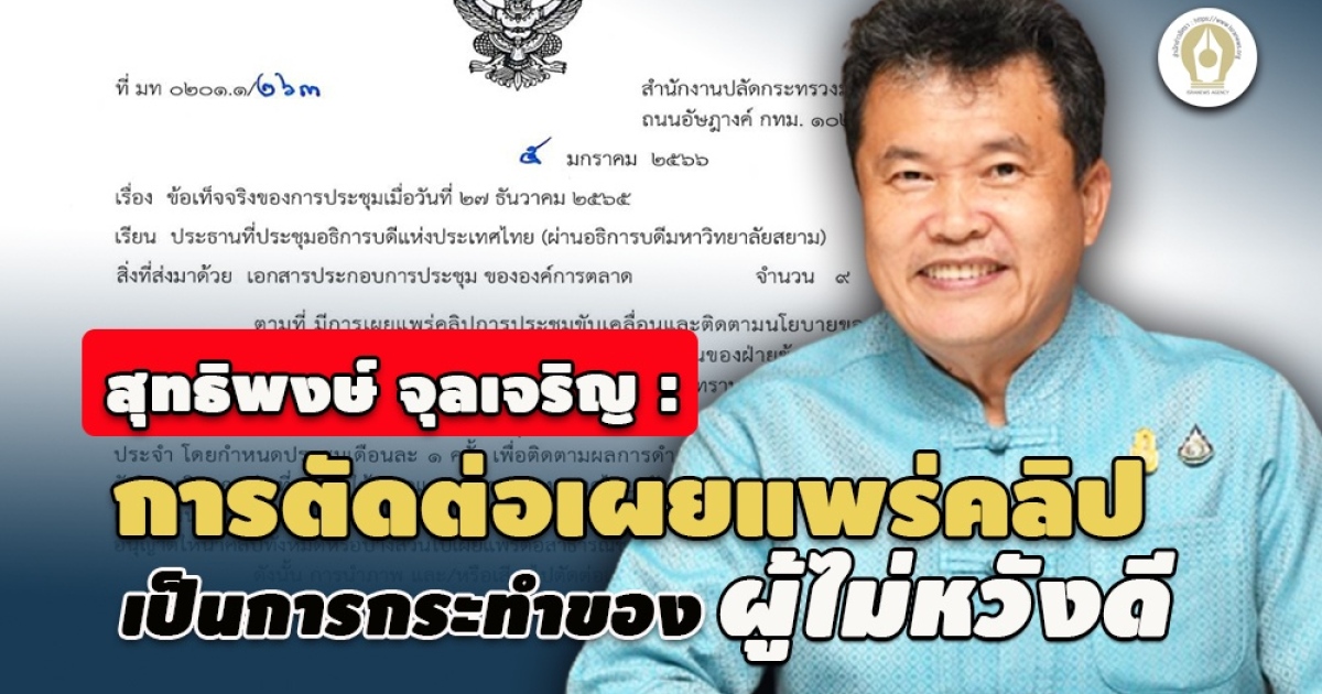 หมายเหตุ สำนักข่าวอิศรา (www.isranews.org) : นายสุทธิพงษ์ จุลเจริญ ปลัดกระทรวงมหาดไทยทำหนังสือถึงประธานที่ประชุมอธิการบดีแห่งประเทศไทยชี้แจงข้อเท็จจริงในการประชุมกระทรวงมหาดไทยเมื่อวันที่ 27 ธันวาคม 2565 และขออภัยในคำพูดที่อาจทำให้เกิดความเข้าใจผิด