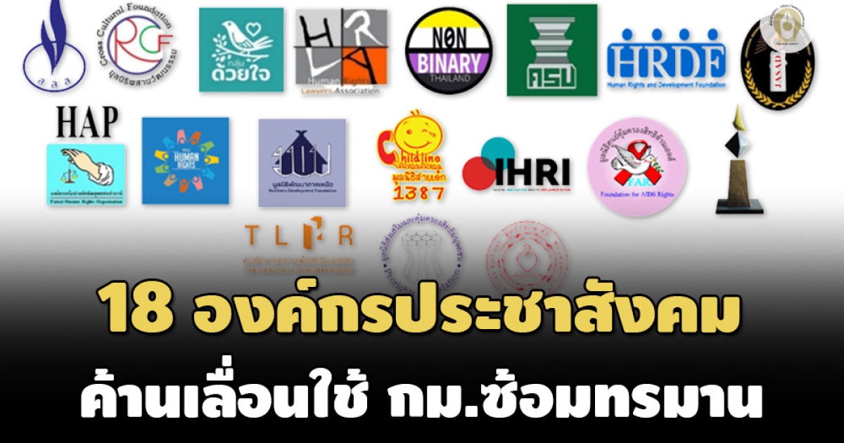 หมายเหตุสำนักข่าวอิศรา (www.isranews.org): องค์กรเอกชนที่ทำงานด้านสิทธิมนุษยชน 18 แห่งออกแถลงการณ์คัดค้านการที่สำนักงานตำรวจแห่งชาติ(สตช.)ขอขยายระยะเวลาการบังคับใช้ พ.ร.บ.ทรมาน-อุ้มหาย มีรายละเอียดดังต่อไปนี้