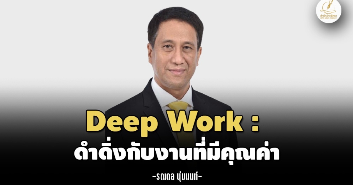 "...อย่างไรก็ดี หากเราเห็นว่างานที่ทำอยู่มีคุณค่า ทำให้เกิดการเรียนรู้ และทำให้องค์กรและตนเองขับเคลื่อนไปข้างหน้า ซึ่งงานในลักษณะนี้ต้องอาศัยการใช้ความคิดอย่างลึกซึ้งและรอบคอบ และใช้สมาธิจดจ่ออยู่กับงานตรงหน้า แคล นิวพอร์ต (Cal Newport)เรียกการทำงานแบบนี้ว่า Deep work หรือการทำงานแบบดำดิ่ง..."
