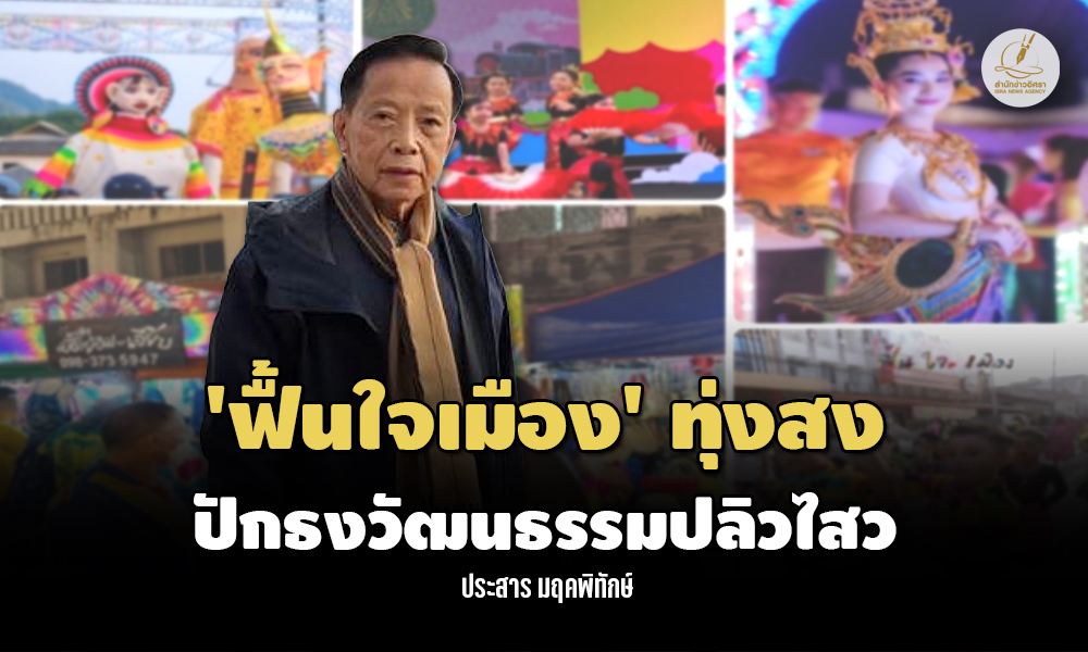 ในวันนี้อลังการงานสร้าง 'หลาดชุมทางทุ่งสง' ติดลมบนแล้ว เมื่อชาวทุ่งสง ตระหนักค่าแห่งภูมิบ้านภูมิเมือง จึงพากันปักธงวัฒนธรรม ให้ปลิวไสว งามเด่นประดับหอนาฬิกา และเรียงรายไปทั่วแผ่นดินทุ่งสงเช่นนี้แล้ว ใครเลยจะกล้ามารอนรานหักหาญน้ำใจชาวทุ่งสง