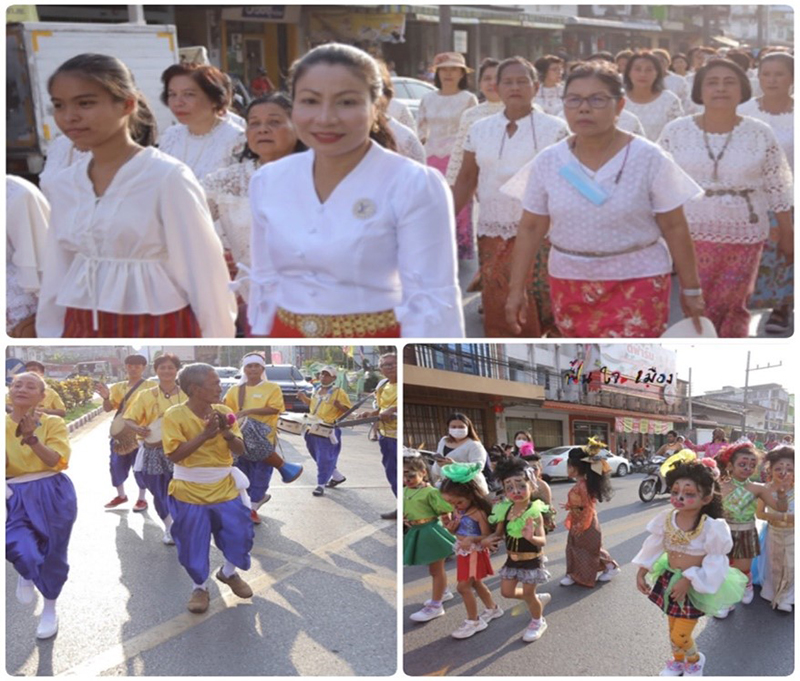 "...งานที่เห็นเมื่อบ่ายถึงค่ำวันนั้น ที่สี่แยกถนนชนปรีดาถึงหอนาฬิกา ต.ปากแพรก อ.ทุ่งสง คือขบวนแห่หลายชุด เช่น หุ่นทองสูง กลองยาวผู้สูงอายุ ชุดผ้าปาเต๊ะ หนังตะลุงคน เดินผ่านอาคารพิพิธภัณฑ์ประวัติศาสตร์ทุ่งสงมายังเวทีหน้าหอนาฬิกา ตรงชุมทางรถไฟ ขณะที่ด้านหลังเวทีเป็นร้านค้าจำนวนกว่า 150 ร้าน ซึ่งจัดจำเพาะให้มีแต่สินค้าผลิตภัณฑ์จากชุมชนในภาคใต้เท่านั้น ตลาดไม่ต้อนรับสินค้าจากห้างใหญ่ และสินค้าจากโรงงาน เพื่อให้เงินหมุนเวียนอยู่ในมือของชาวบ้าน พื้นถิ่นอย่างแท้จริง..."