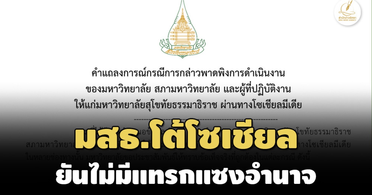 หมายเหตุสำนักข่าวอิศรา (www.isranews.org): เมื่อวันที่ 8 พฤษภาคม 2566 มหาวิทยาลัยสุโขทัยธรรมาธิราช ออกแถลงการณ์ถึงกรณีการกล่าวพาดพิงการดำเนินงานของมหาวิทยาลัย สภามหาวิทยาลัย และผู้ที่ปฏิบัติงานให้แก่มหาวิทยาลัยสุโขทัยธรรมาธิราช ผ่านทางโซเชียลมีเดีย ใน 3 ประเด็น ดังนี้