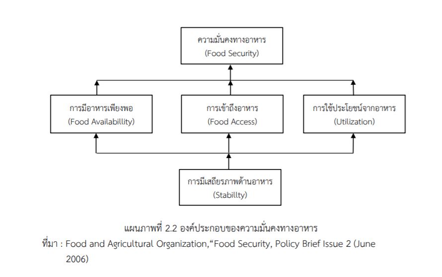 การมีอาหารเพียงพอ Food Availability : อาหารมีคุณภาพที่เหมาะสมในปริมาณที่เพียงพอ ต่อความต้องการ ซึ่งอาจได้มาจากการผลิตภายในประเทศ หรือการนำเข้า