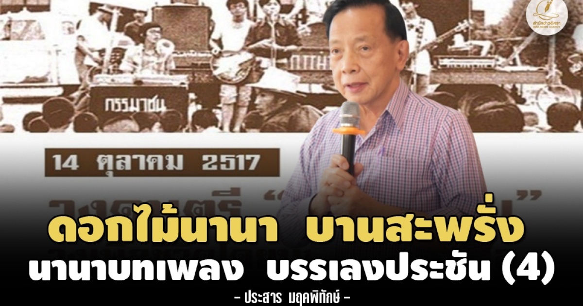 "... 14 ตุลาคม 2516 เป็นปรากฏการณ์ปลดปล่อยพลังสร้างสรรค์ของสังคมไทยในทุกมิติ งานศิลปวัฒนธรรมด้านบทเพลงก็เช่นกัน ไม่มียุคไหนที่จะเปิดบรรยากาศ ได้อย่างกว้างขวางมากมายเช่นนั้นมาก่อน …"