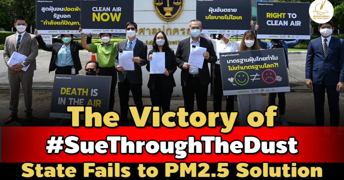 As a result, the Environmental Law Foundation, Greenpeace Thailand, the Ecological Alert and Recovery - Thailand, Chiang Mai Breath Council, Northern Region Breath Council, and social activists such as Dr. Suphat Hasuwankit, President of the Rural Doctors Club, and Ms. Nanticha Ocharoenchai, Co-founder of Climate Strike Thailand, collectively filed a lawsuit with the Central Administrative Court. The lawsuit targeted three government agencies, the National Environment Board, the Ministry of Natural Resources and Environment, and the Ministry of Industry, which serve as the main responsible bodies. This action was taken on March 22, 2022, to compel these government agencies to fulfill their duties in addressing the issue of air pollution caused by PM2.5 dust and safeguarding the people's right to live in a healthy and environmentally safe environment.