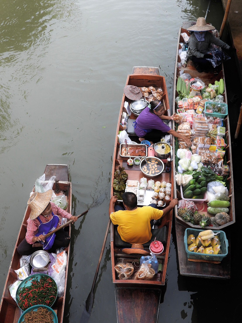 จึงมีตลาดน้ำ ในสายตาคนบางกอก แต่นั่นคือตลาดนัดตามวันของคนทำเรือกสวน คือนัดกันพายเอาของข้าวผลไม้มาแลกเปลี่ยนทำกิจกรรมประเพณีกัน